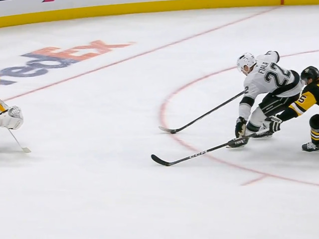 Watch as Los Angeles Kings’ Kevin Fiala powers past Penguins’ Erik Karlsson before showing off some impressive patience and composure to lift the puck over netminder Sergei Murashov.