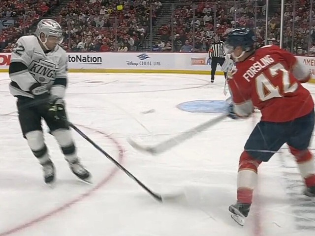 Watch as Los Angeles Kings forward Kevin Fiala scores one of the strangest goals you’ll see this season, as a clearing attempt by the Florida Panthers ricochets off his leg, firing straight past Daniil Tarasov and into the net.
