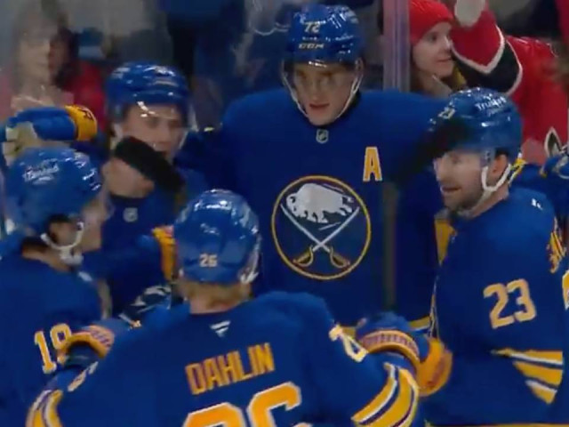 Watch as Buffalo Sabres forward Tage Thompson receives a pass from Josh Doan and fakes a shot and outwaits New York Islanders goaltender David Rittich before sneaking the puck in from below the goal line.