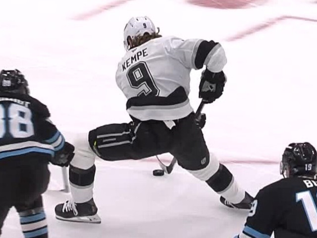 Watch as Los Angeles Kings forward Adrian Kempe shows off some slick stickhandling, gliding through the Utah Mammoth defence and finishing with the backhand for a pretty icebreaker goal.